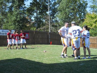 Auburn opened the scoring on a 12- yard TD reception by Teddy Hall on their first possession to take a 6-0 lead. Alabama would answer the following series to tie the game 6-6 thanks to a 3-yard TD reception by Cindie. Both teams failed on the 2-pt conversions. Both teams would tack on two scores each in the 2nd Quarter. Auburn scored on two design runs from QB Mike Hall and Alabama scored on a design run by QB David Hall. Marc Hall also found the endzone for the Tide on a 3-yard TD recption. Auburn hit on both 2-point conversions with Alabama missing one in which the Tide trailed 22-20 at the half.