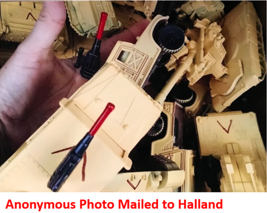 Halland News – Once again, The Halland Intelligence Agency (HIA) was able to solve another mystery. Over a period of two months, The Halland Government received an anonymous photo of someone who clearly had access to military vehicles belonging to the 5th Mechanized Infantry Division. The photo only showed a hand. However, the post mark did not match-up with previous anonymous letters sent to other Hall Nations. An investigation was initiated but the HIA had no definitive leads.